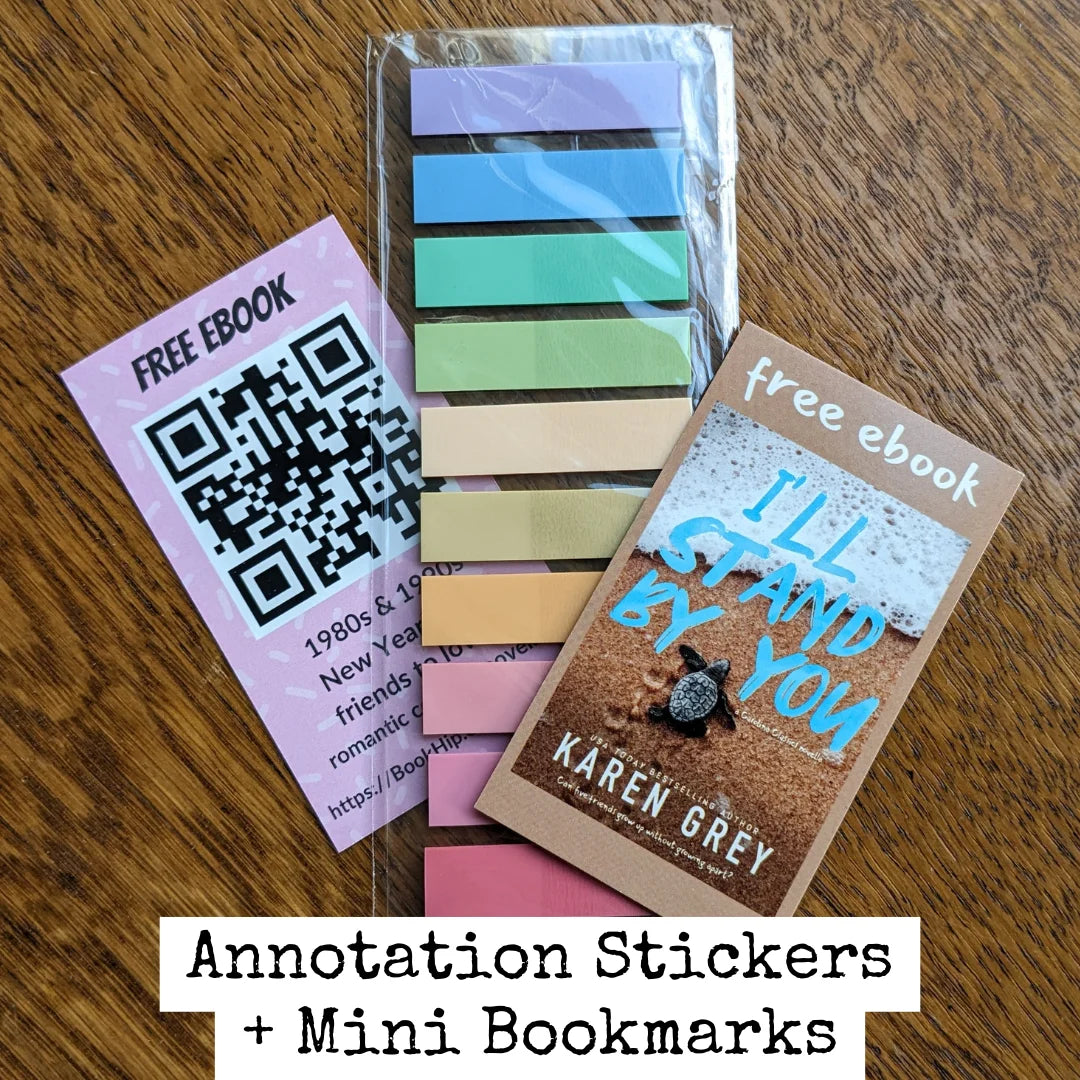 - 2 mini bookmarks with free novella ebook downloads