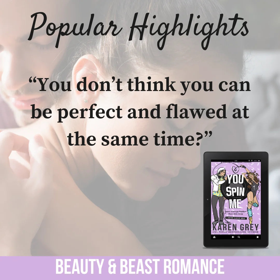 Karen Grey continues to deliver my favorite aspects of romance in You Spin Me. Authentic and fully developed characters, laughs, tears, sexy scenes, and a wonderful HEA. While the story stands on it’s own – there’s references to events and characters from previous books, the Boston Classics series is best enjoyed in order.